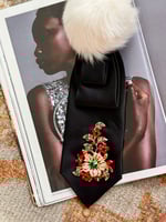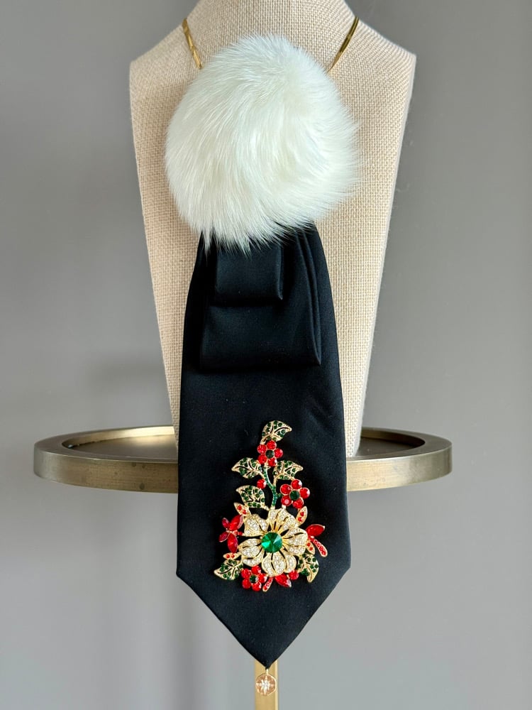 Holiday Snowball Royale is a showstopping UpTie crafted from a sleek, jet-black silk tie — the perfect canvas for lavish winter drama.